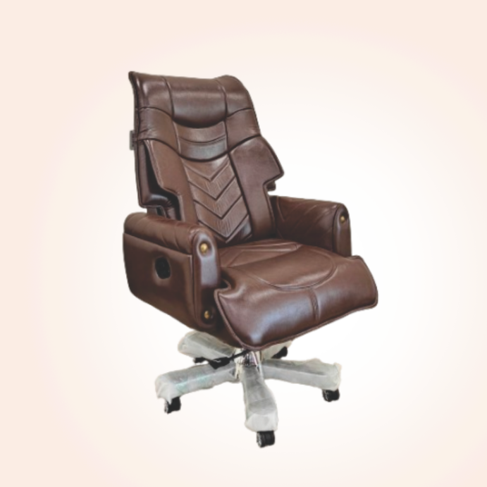 The High Back Chair – 007 by Bluefox Furniture features a modern, sculpted design that offers exceptional comfort and style. Its plush cushioning, ergonomic high back, and extendable leg support make it perfect for long working hours. The rich leatherette finish and sturdy metal base add elegance and durability to any office setup. Ideal for executive cabins and premium workspaces.