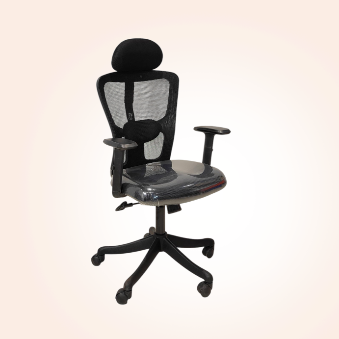 The Mesh Chair -001 comes with a breathable mesh backrest, adjustable headrest and ergonomic lumbar support. Its cushioned seat and flexible armrests provide comfortable seating, while the sturdy base ensures stability for daily office use.