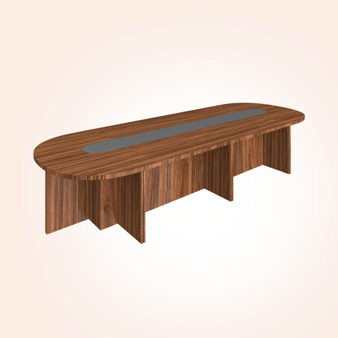 This conference table features a smooth, oval-edged top with a stylish wooden finish. Its sturdy base design adds strength and long-lasting durability. The central panel detail enhances its premium and professional look. Perfect for group discussions, meetings, and collaborative workspaces.