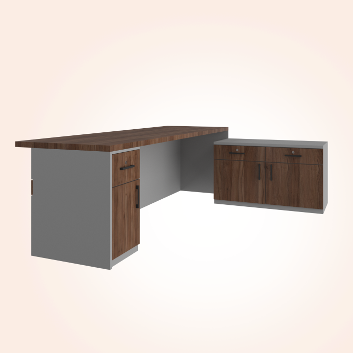The Vetro Boss Table by BlueFox Furniture is designed to combine elegance and functionality for executive offices. With a spacious tabletop and integrated storage compartments, it offers a professional workspace that keeps essentials organized while maintaining a sleek, authoritative look.